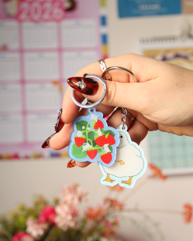 Porte-clés Acryliques – Canard Timide & Lapins Fraisiers